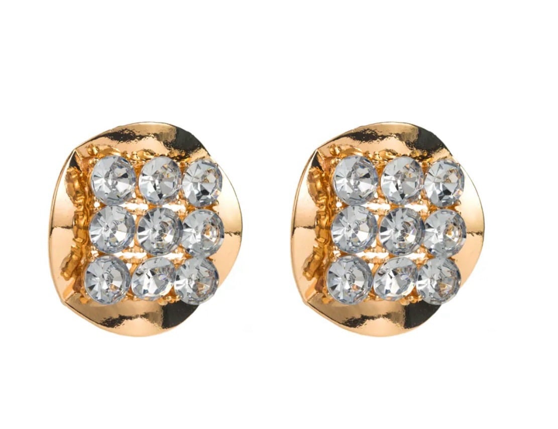 Gold-Plated Rhinestone Round Inlay Alloy Ear Studs: