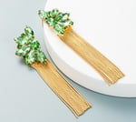 These earrings feature a flower design with long tassels, creating an elegant and eye-catching look.