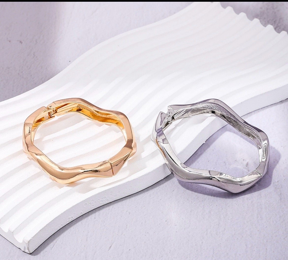 Remember that these bangles can be worn individually or stacked for a stylish look. Whether you choose silver or gold, these wave bangles will add an elegant touch to your outfit!